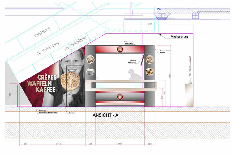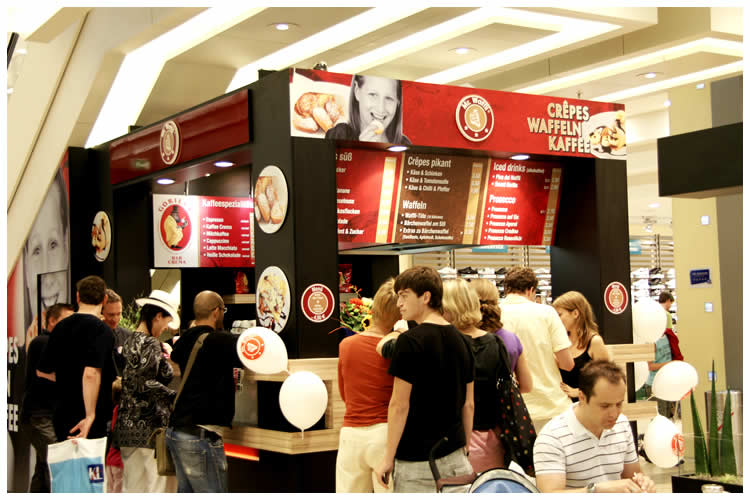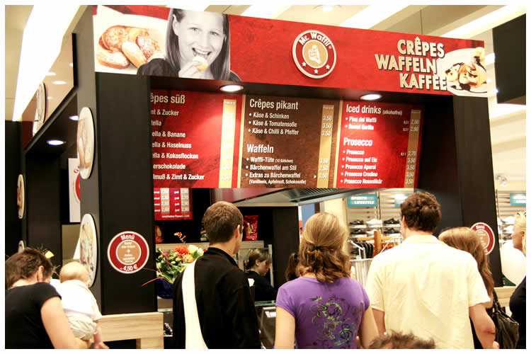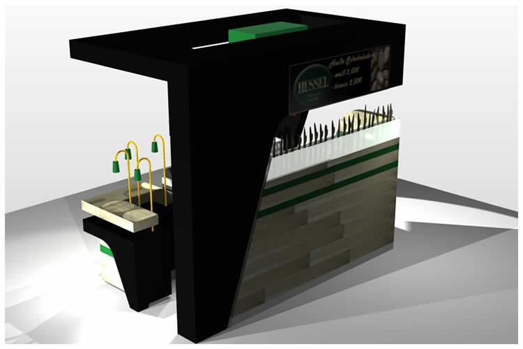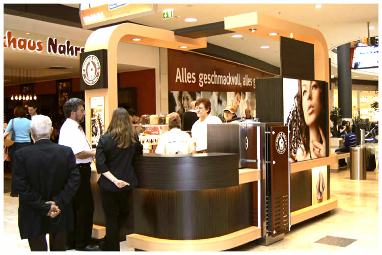 Baguette Company Die Firma Baguette Company ist ein aufstrebendes Franchise Unternehmen mit Filialen in ganz Deutschland. Mit dem Unternehmen Baguette Company arbeiten wir seit langem erfolgreich zusammen. Wir haben alle Filialen geplant und realisiert. ![]() Romeo und Giulia Für die Firma Lumen aus Kulmbach haben wir ein Ladenkonzept für ihre Marke Romeo & Giulia, entwickelt. Die Markenpolitik von Romeo & Giulia zielt darauf ab, die hohen Qualitätsstandards durch das öffentliche Auftreten zu repräsentieren. Diese Ansprüche haben wir natürlich in der Planung und Gestaltung der Verkaufstände berücksichtigt. Das Konzept Romeo & Giulia wurde im franchise System vervielfältigt und optimiert. Inzwischen wurden unterschiedliche Verkaufsstände entwickelt und realisiert, die sich perfekt an die Standortgegebenheiten anpassen und ein einheitliches, äußeres Erscheinungsbild waren. ![]() Mr. Waffli Für das Startup Unternehmen Mr. Waffli haben wir einen Pilot-Verkaufsstand für den ECE Standort Karlsruhe entwickelt. Wir haben den Ladenbau von der Konzeption über die Gestaltung bis hin zur Realisierung betreut. Planungsskizzen: ![]() ![]() ![]() Realisierter Verkaufsstand: ![]() ![]() ![]() ![]() ![]() ![]() ![]() ![]() (für eine vergrößerte Ansicht bitte auf das entsprechende Bild klicken) ![]() HUSSEL Süßwaren |